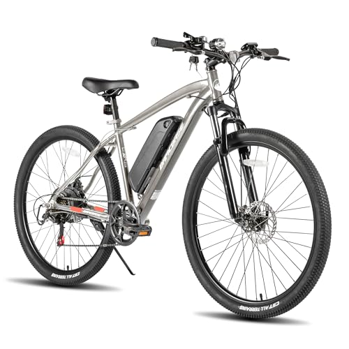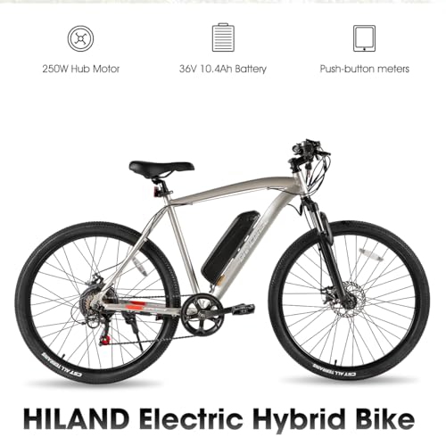 Specificaties: Hiland Elektrische fiets voor vrouwen en mannen, 27,5 inch, 250 W motor, 36 V, e-bike met 7 versnellingen, e-mountainbike met schijfremmen, zwart/grijs