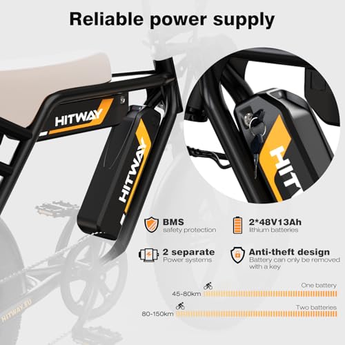 Plaats de eerste recensie voor “HITWAY Elektrische fiets 20 x 4,0 inch, Fat Tire e-bike, lithium batterij 48 V, 15 Ah/2 x 13 Ah, max. snelheid 25 km/u, tot 45-150 km, pedaalondersteuning, dames en heren”